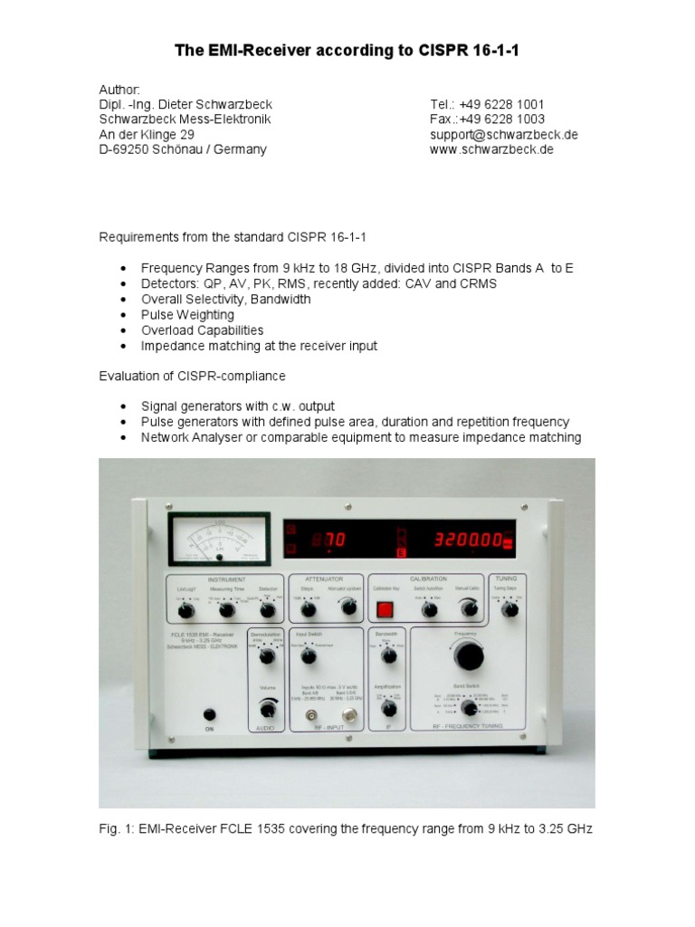The rms detector indicates proportional to the squareroot of the pulse repetion frequency. By the parallel simulation of several thousand emi. The average detector simply measures the average value of the signal. Draft laboratory division publication title: Most major industries including smart grid equipment and electric vehicles are required to follow cispr 16 guidelines.